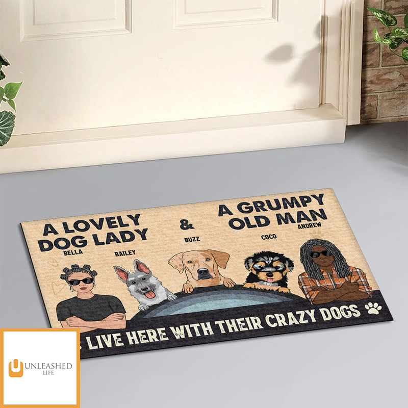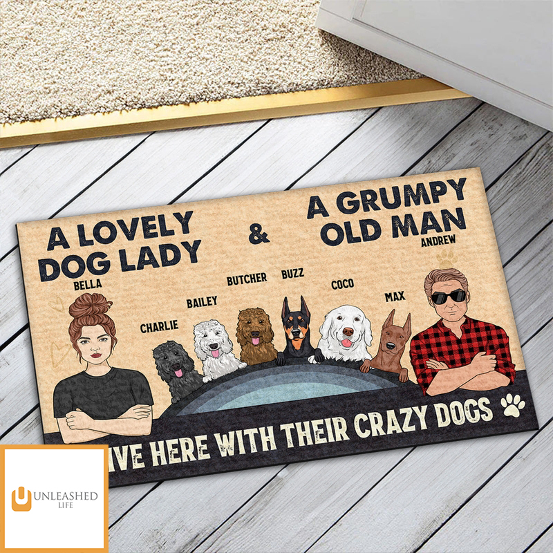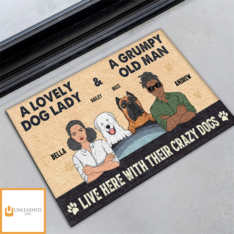 Lovely Dog Lady And Grumpy Old Man – Personalized Custom Doormat